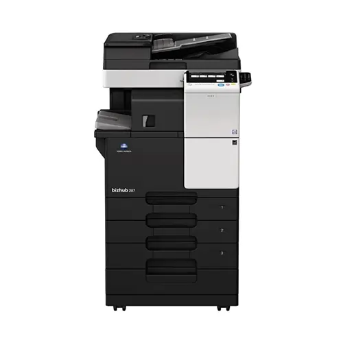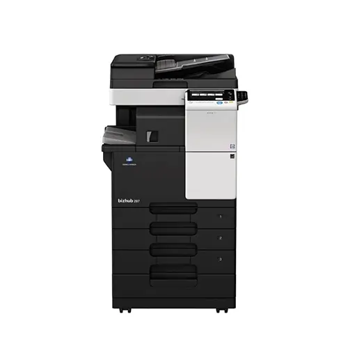The bizhub C258 multifunction office printer provides productivity features to speed your output in both color and B&W, including fast 25-ppm printing, optional single-pass dual scanning to bring originals into your workflow faster, graphics like color and powerful finishing options for right-size scalability. The enhanced control panel features a new mobile connectivity area. The current model is the bizhub C250i.