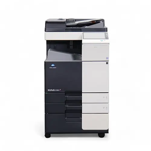 The bizhub C308 color multifunction printer provides productivity features to speed your output in both color and B&W. The C308 is the upgraded model from the bizhub C284e, and now includes fast 30 ppm printing, optional single-pass dual scanning to bring originals into your workflow faster and powerful finishing options for right-size scalability. Also, the new enhanced control panel now features a new mobile connectivity area making it easy to print straight from your mobile device. The current model is the bizhub C300i.