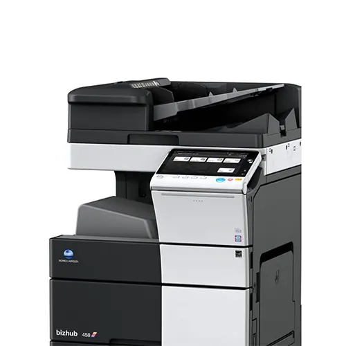 The bizhub C458 multifunction printer can boost your output speed and improve your productivity with 45 ppm print/copy speed in both color and B&W, standard single pass dual scanning at up to 240 originals per minute and an enhanced 10.1 inch control panel to ensure seamless operation between the MFP, PC tablet, smartphone and other devices.