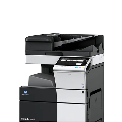 The bizhub C558 multifunction color printer is ideal for high-speed output with 55 ppm print/copy speed in both color and B&W, standard dual scanning for both color and B&W at up to 240 originals per minute and an enhanced 10.1” inch control panel with a new mobile connectivity area.